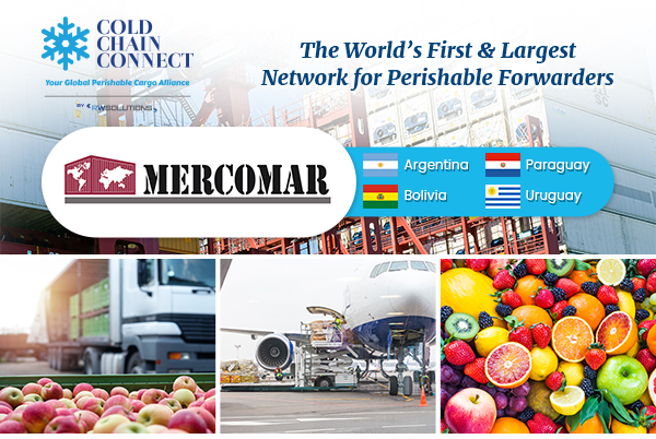 We are glad to announce that MERCOMAR has registered and confirmed their membership with Cold Chain Connect – Your Global Perishable Cargo Alliance for their branches in Argentina, Bolivia, Paraguay, Uruguay!